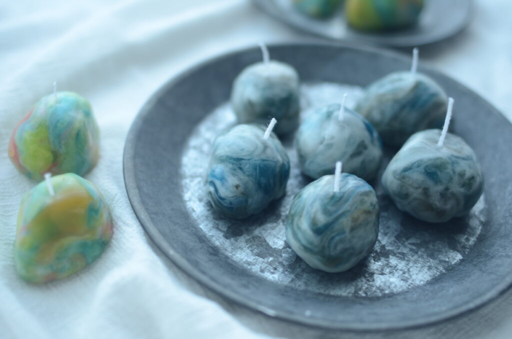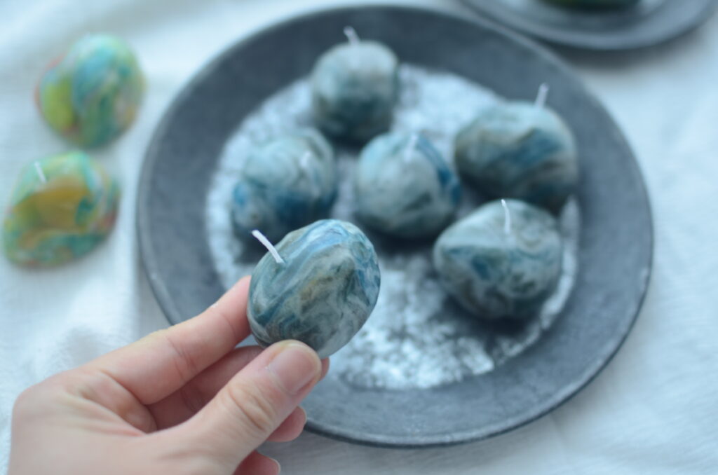 3種類のワックスを使用して製作する鉱石キャンドルです。
