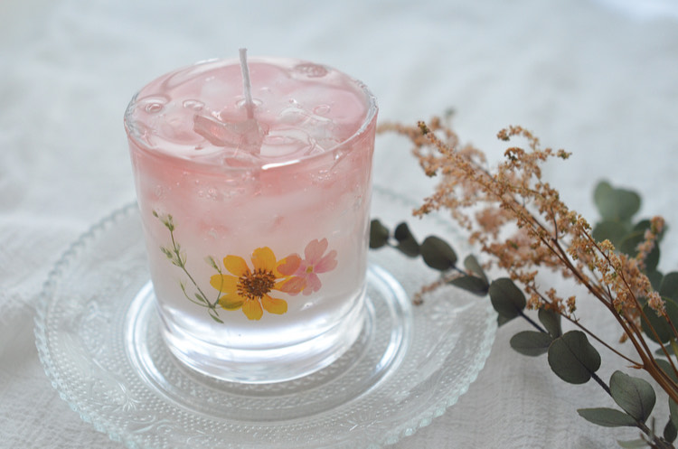 写真のキャンドルは春らしく、白と桜色で仕上げてみました!