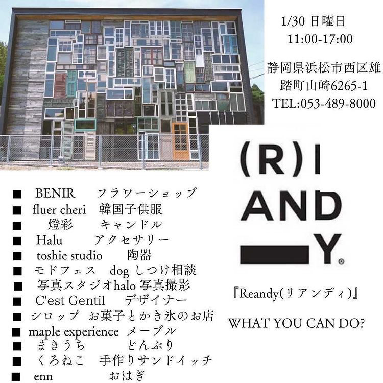 浜松のオシャレスポットReandy様にて出店させていただきます♪